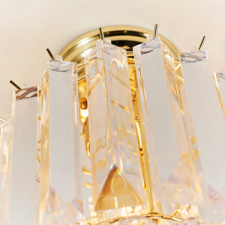 The Fargo flush is finished in brass effect with clear acrylic detailing. This fitting is dimmable and suitable for use with LED lamps. Other fittings and finishes also available within the range