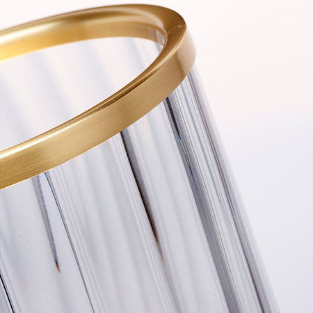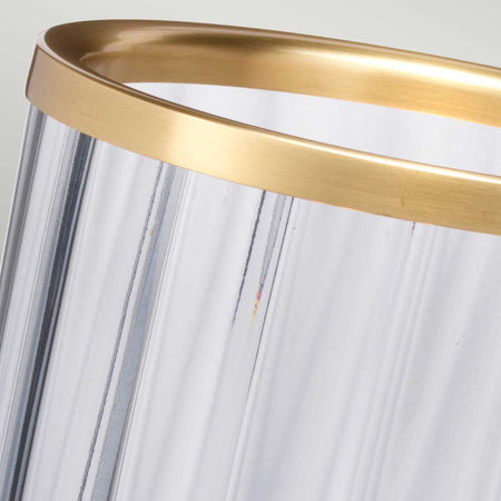 Blown glass obelisk table lamp with a prismatic texture and Smoked tint. The light source is hidden in the base with fine metal detailing in Aged Brass.
