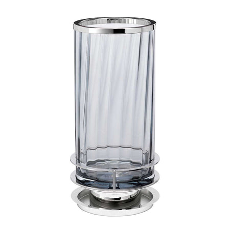 Blown glass obelisk table lamp with a prismatic texture and Smoked tint. The light source is hidden in the base with fine metal detailing in Polished Nickel.