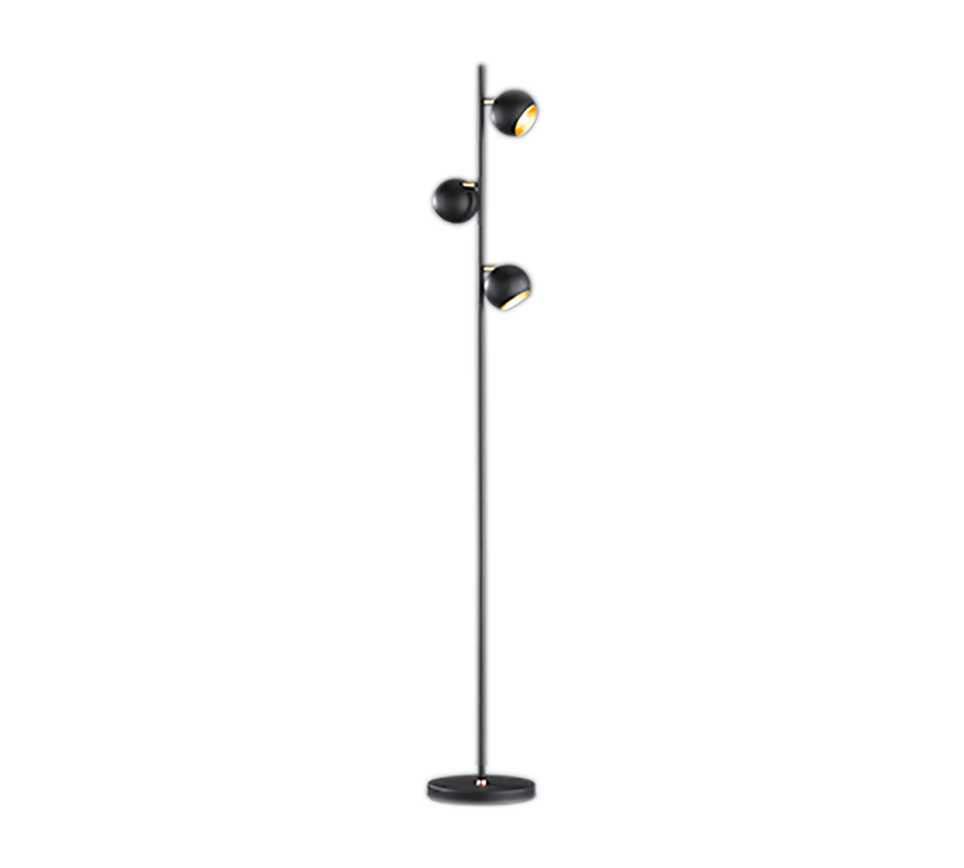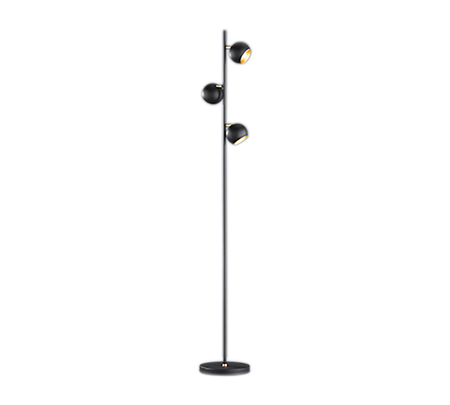 The three spotlights can be individually aligned to highlight specific areas. The beautifully designed and colour-coordinated light has a height of 155 cm and fits perfectly into modern and classic interiors. The spotlight has a stylish matt black exterior and gold-coloured interior.