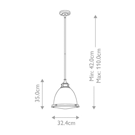 Amelia’s classic pendant design reinvents vintage details with a cast glass fitter, cast metal trim ring and prominent hinges and clasps. The dome has an etched prismatic bottom lens and the full metal body versions have a vintage appearance to them.