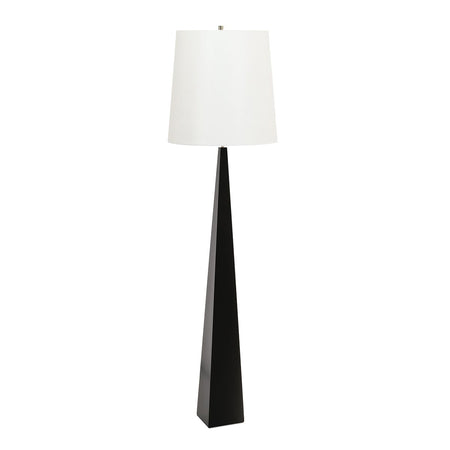 Black-painted steel tapered column floor lamp with Polished Nickel accents. Includes a White faux silk hard-backed shade. Made in England. LS463