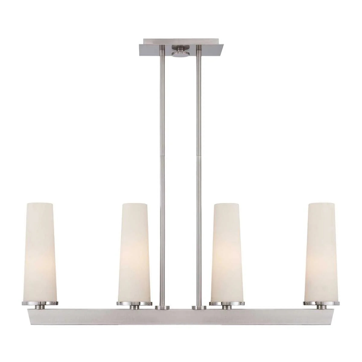 Inspired by contemporary London apartments, the Chelsea Loft collection is a very sleek minimalistic fixture which is finished in Brushed Nickel and features tall opaque glass shades.