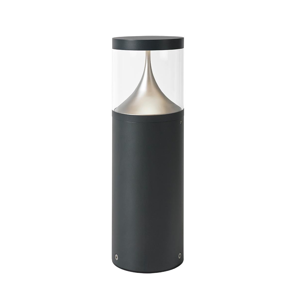 A medium size modern bollard constructed from aluminium powder coated black and an acrylic lens. Energy efficient with an intergrated 20.3watt LED producing 2240 lumens of light. Rated IP65 for outdoor use and comes with a 5 year warranty against severe corrosion.