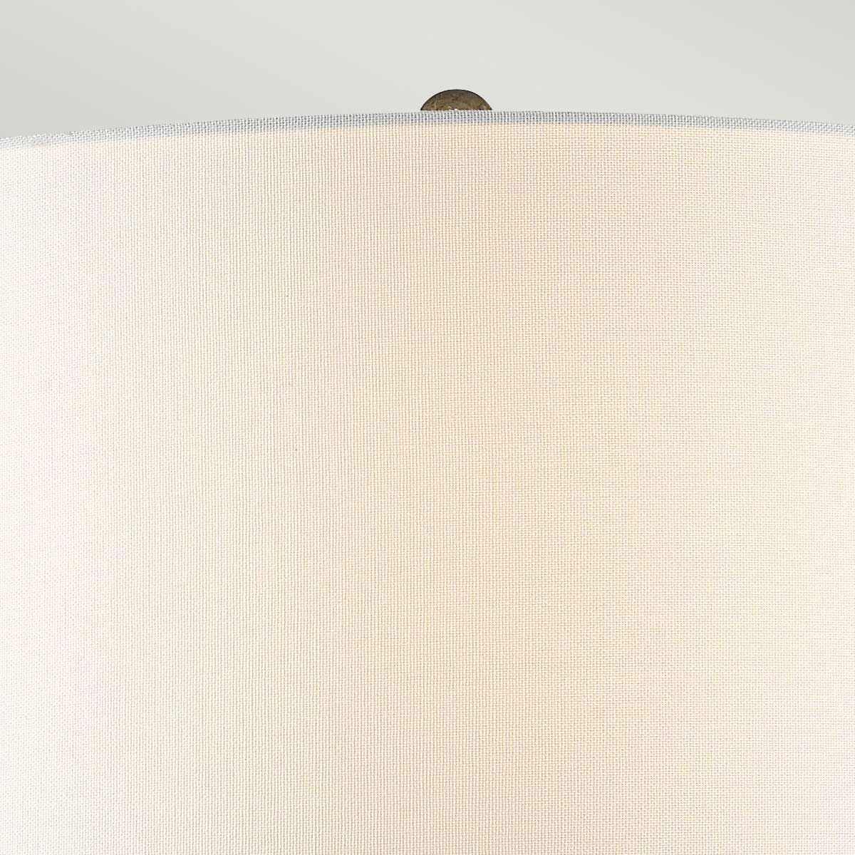The Lafitte table lamp has a Distressed Silver steel body on mocha brown steel base with a Cream Linen tapered drum shade.