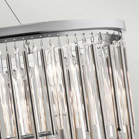 Piper mixes modern with femininity with its delicate glass bead accents. Making this a focal point in any modern room is the linear detail in the clear glass and metal rods finished in Polished Chrome.