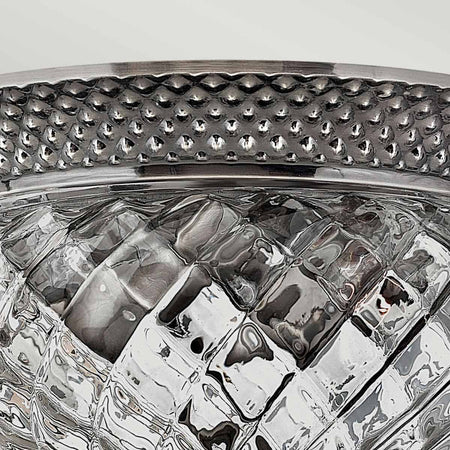 A Hinkley classic, the ornate Plantation collection features exceptional pineapple shaped clear optic glass that makes a noble statement. The Polished Antique Nickel finish has matching candle sleeves and elaborate decorative cast detailing.