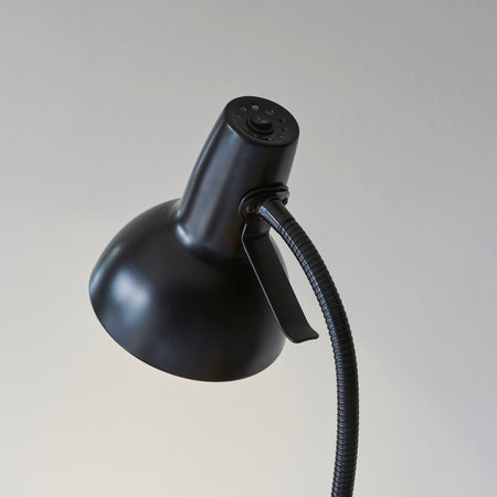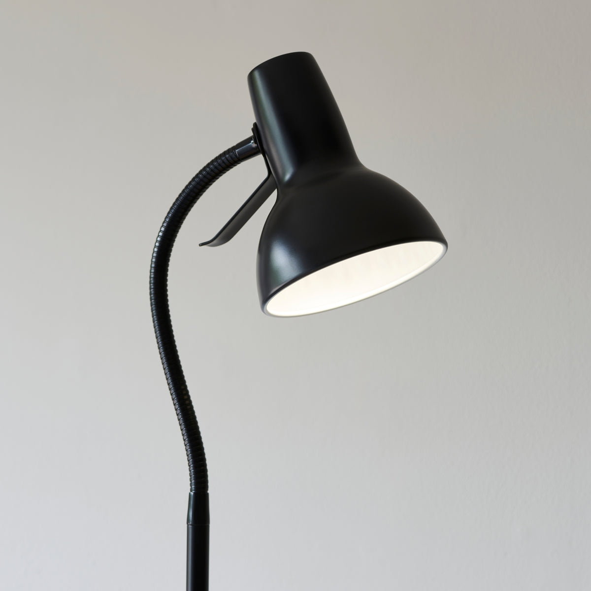 This reading floor lamp is the perfect 'no nonsense' product, a simple modern design with adjustable head and perfect for use with LED lamps. Modern matt black finish with an easily accessible on/off switch at the back of the head, use the curved handle to adjust the angle of the head to direct light to exactly where you need it.