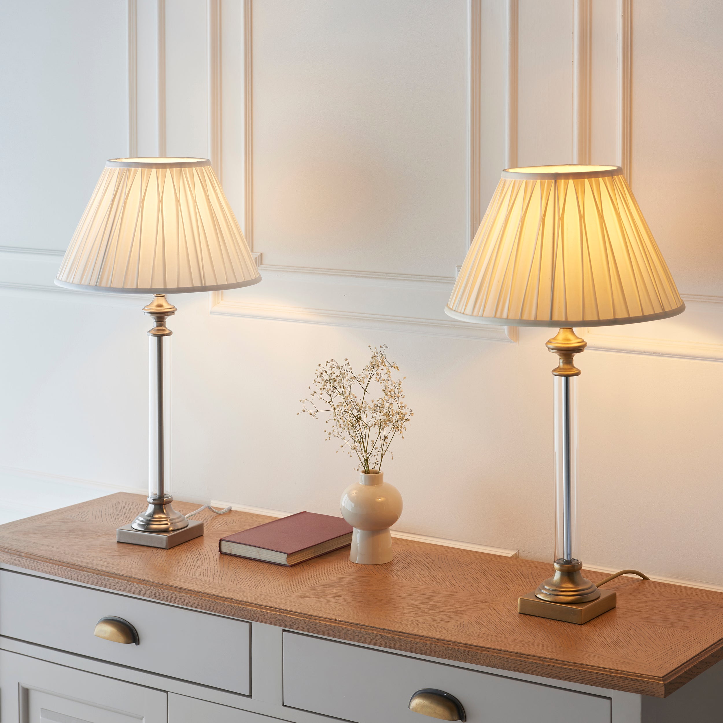 Avebury is a classically-inspired clear glass column lamp, with a timeless feel that compliments most classic and traditional spaces. Perfect when paired with one of our beautiful pleated fabric shades.