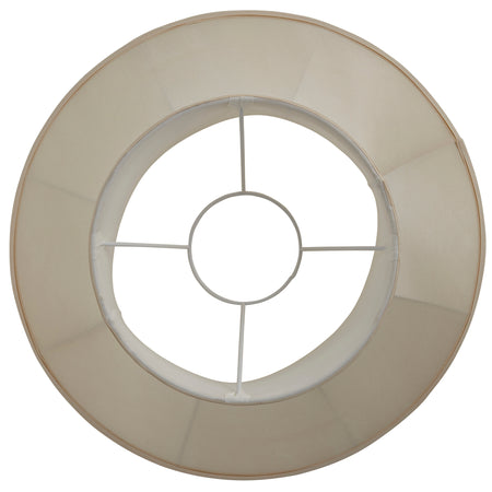 This 22 inch handmade cream lamp shade is shaped in a round bell design and has a double folded trim on the top and bottom. For use with a variety of lamp bases and available in a choice of sizes