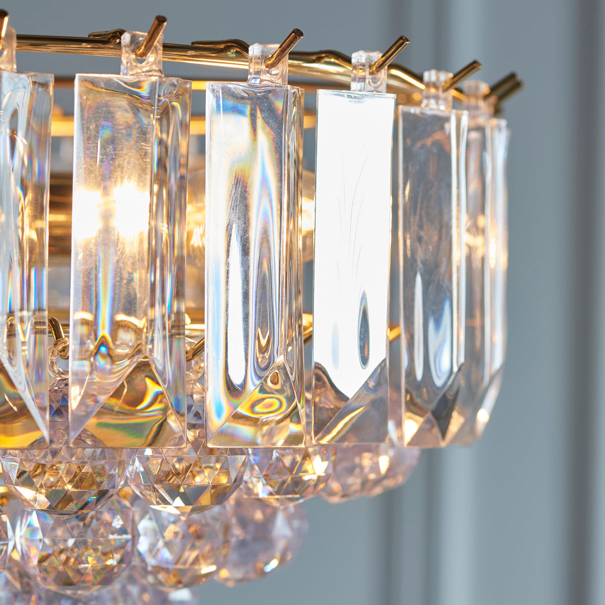 Fargo 3Lt Pendant - Brass Effect with Clear Acrylic Detailing