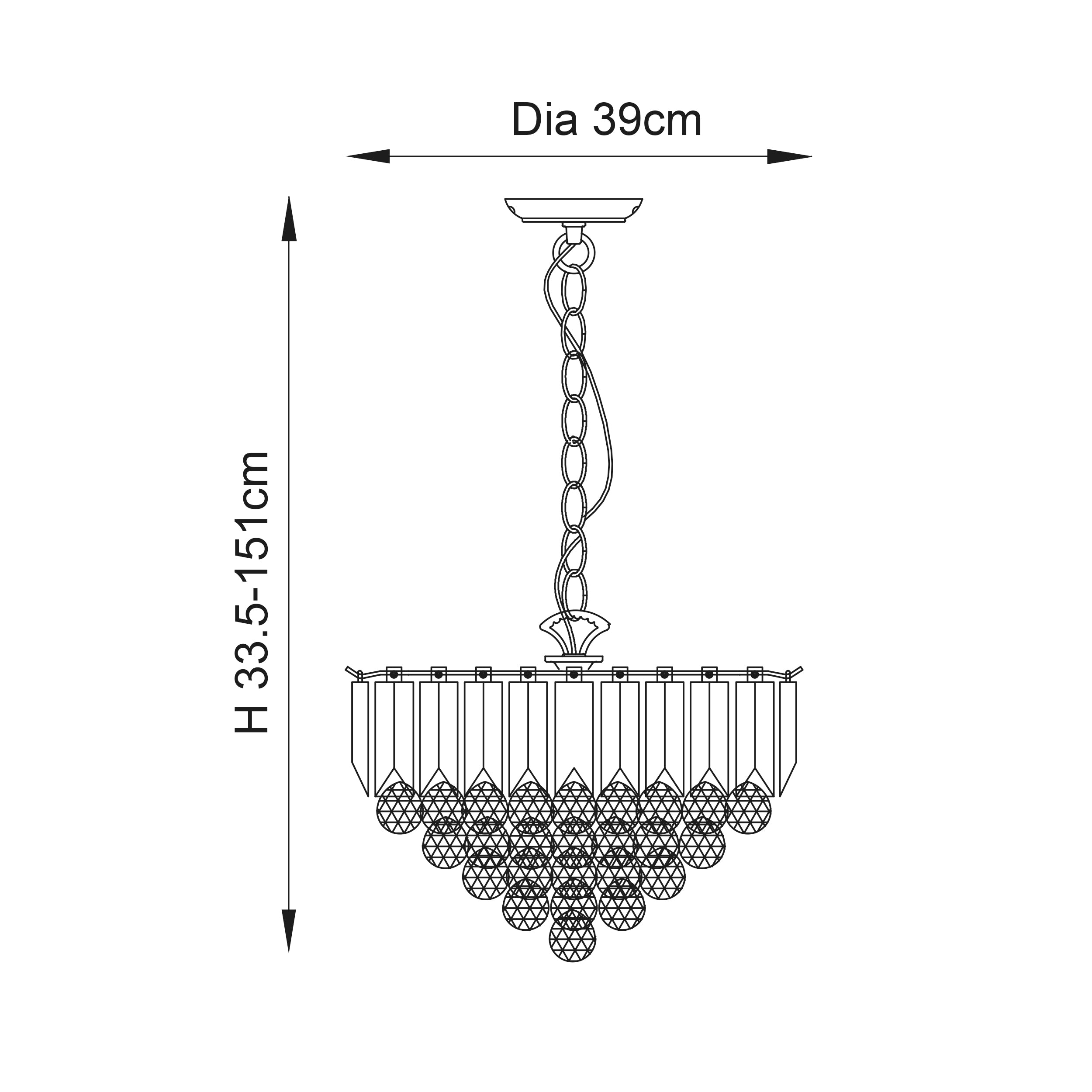 • Height adjustable 1 metre antique brass chain and brown flex
