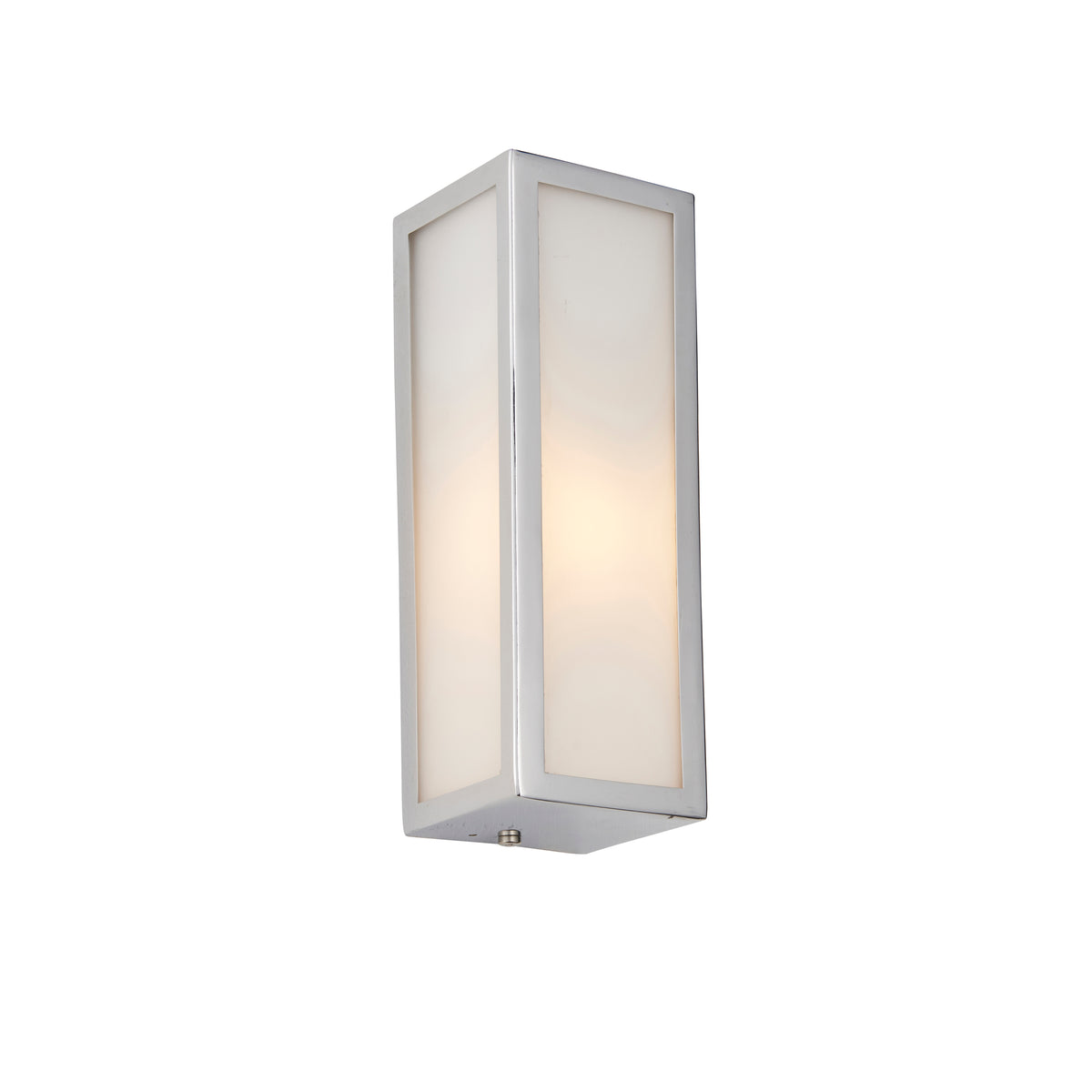 Simple yet stylish contemporary wall light with chrome plate finish and frosted glass diffuser. Dimmable and IP44 rated ideal to create a relaxing ambient light in any bathroom. Larger size also available.