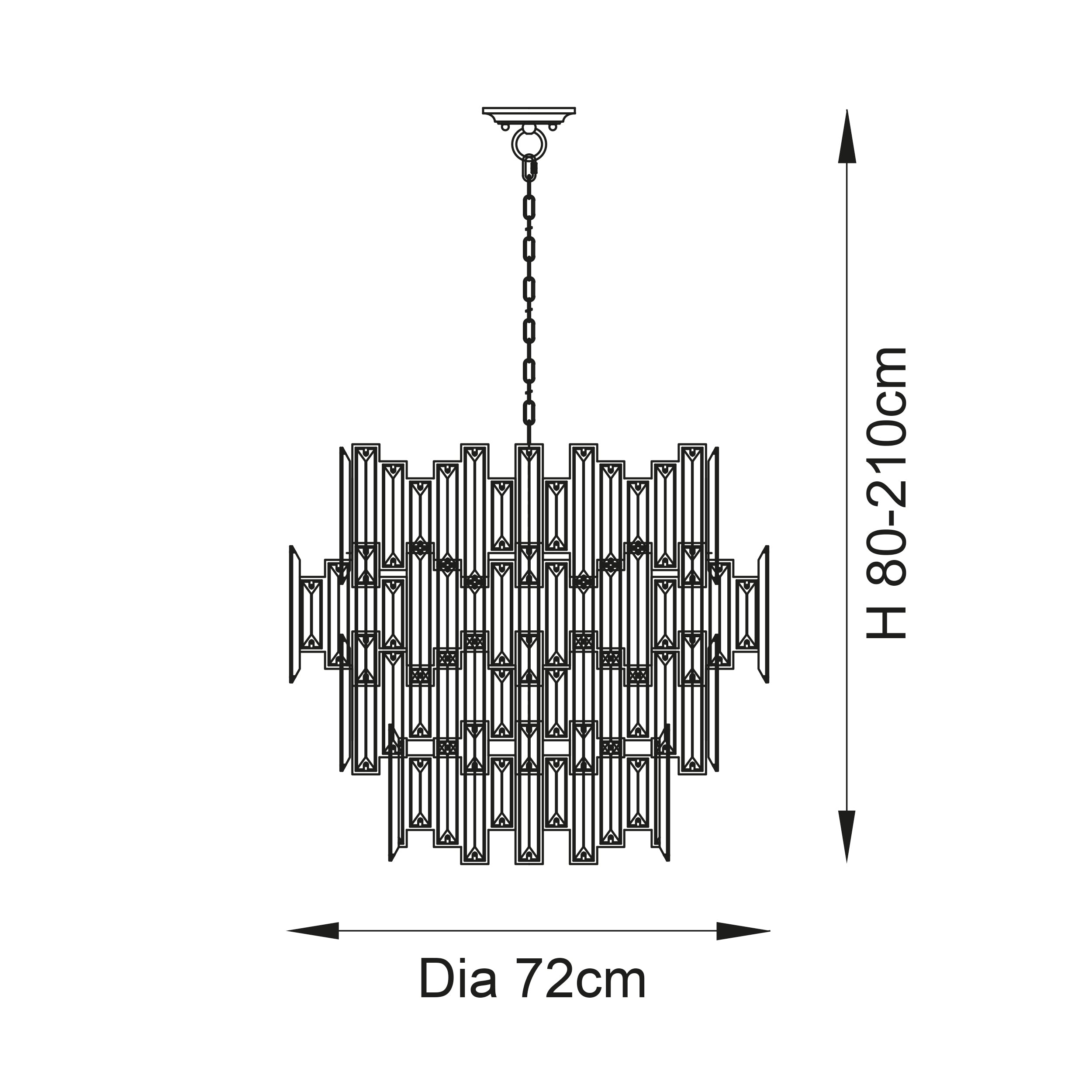 • Height adjustable chain with 1.5 metre clear cable