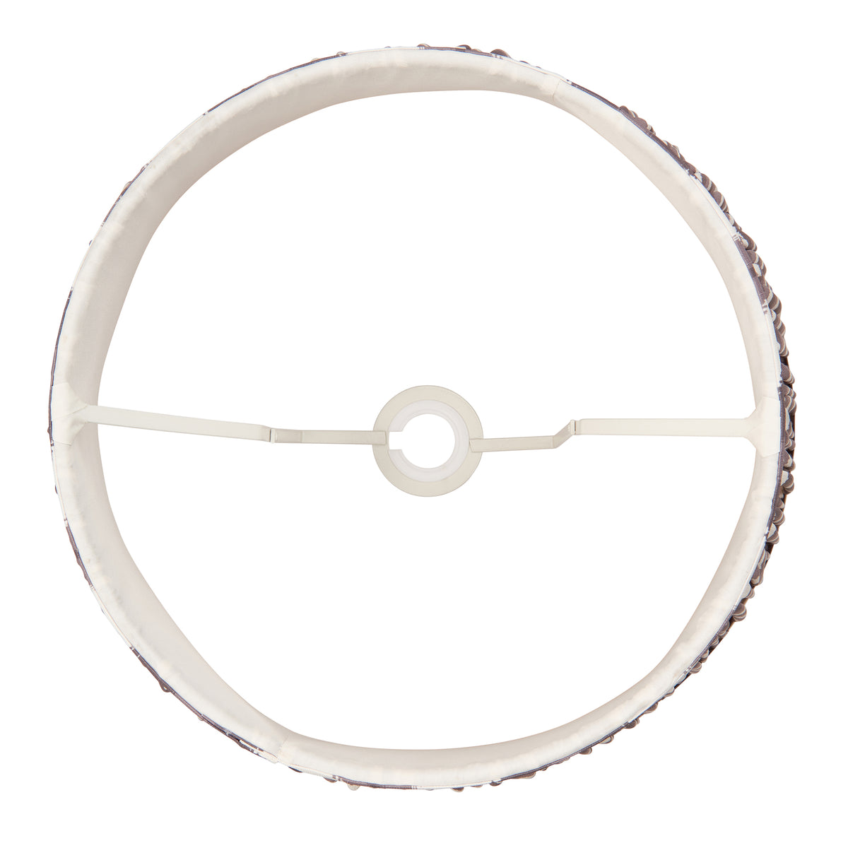 35cm tapered shade with reversible white gimbal. Zigzag pattern in pearl grey colour with taped edge detailing and plain inner lining. Perfect when paired with one of our beautifully decorative table lights, floor lights and cable sets.