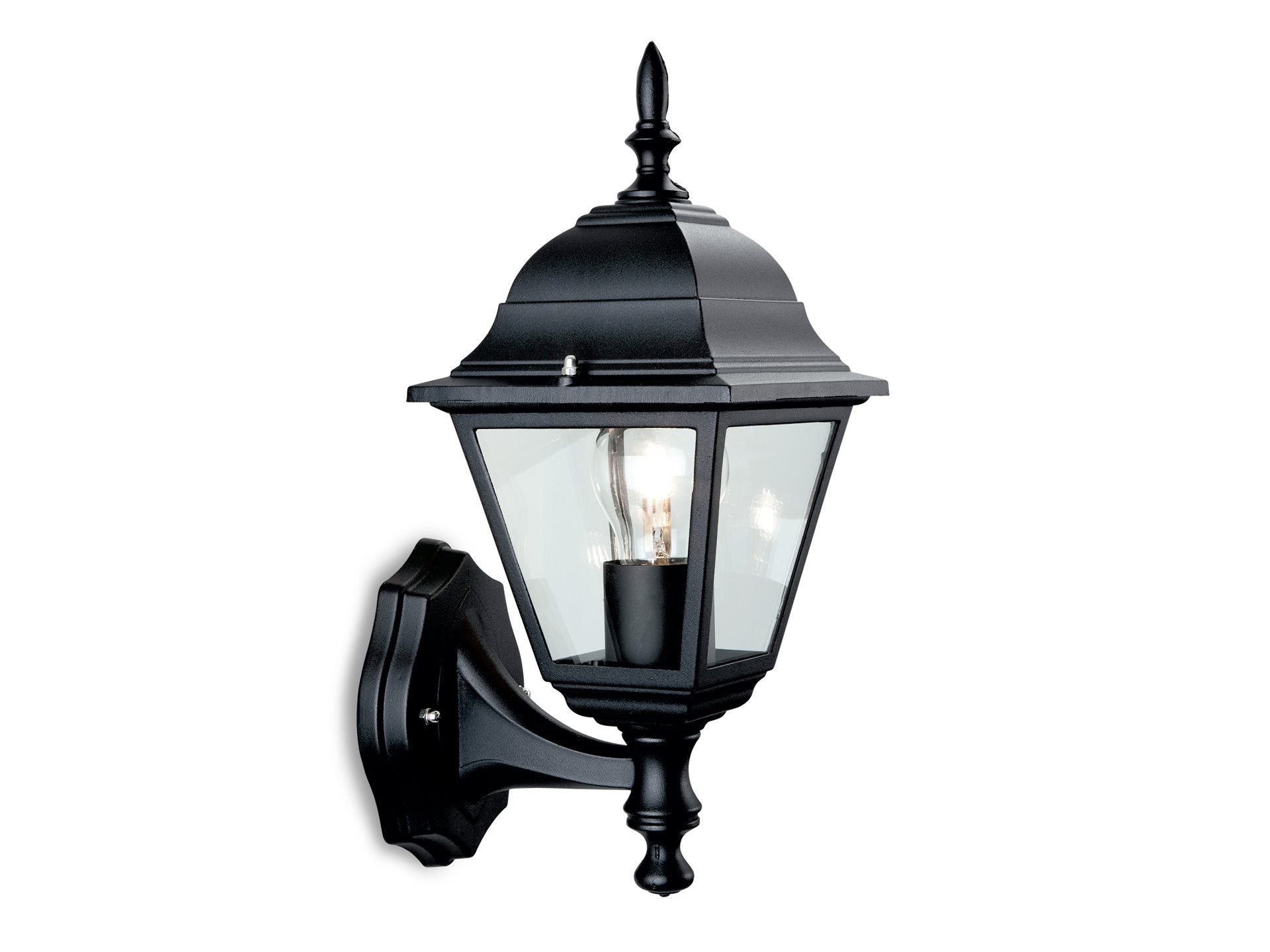 Traditional 4 panel uplight lantern in die cast aluminium and clear glass panels. Ideal for use with a E27 LED lamp.
