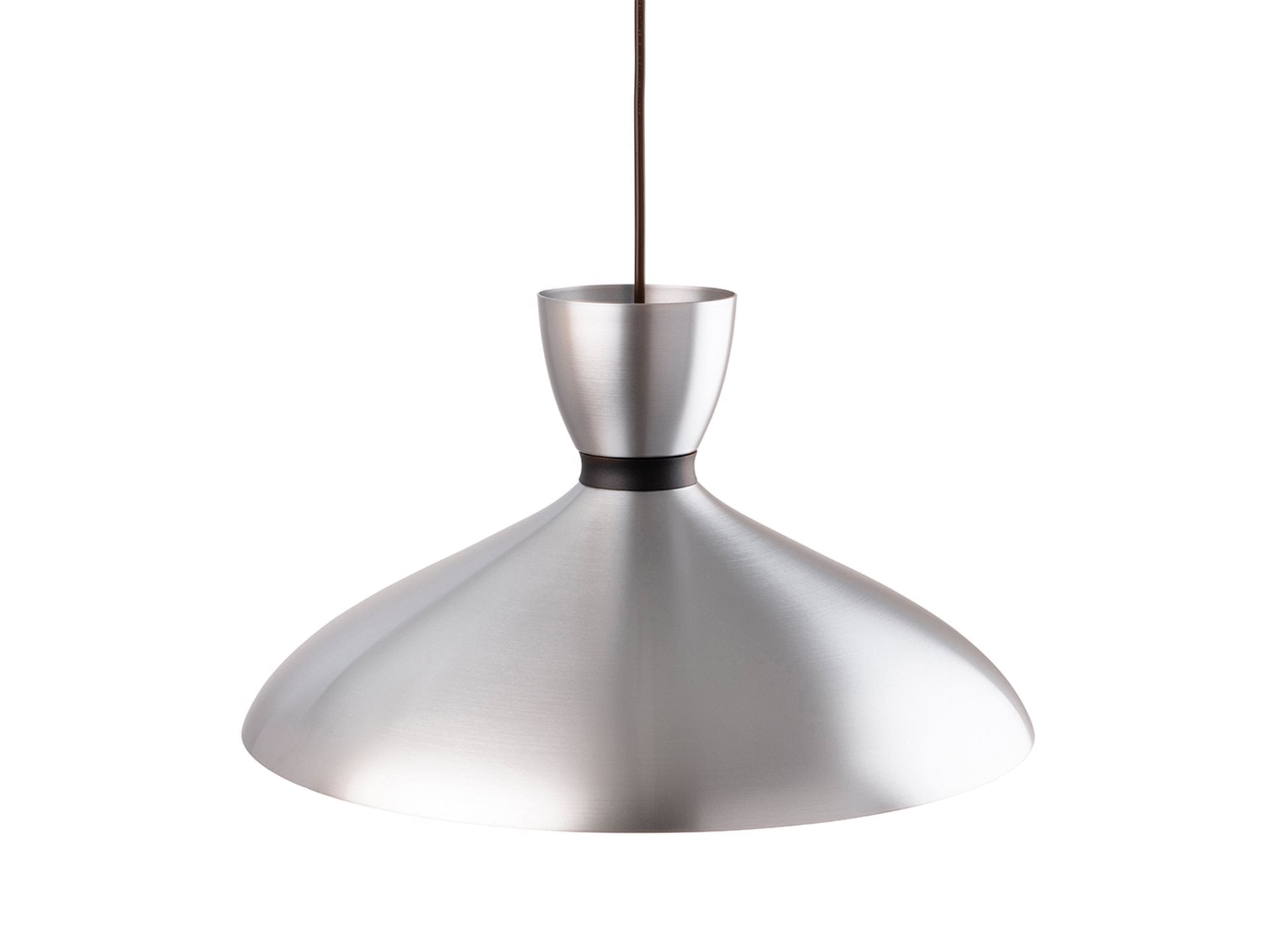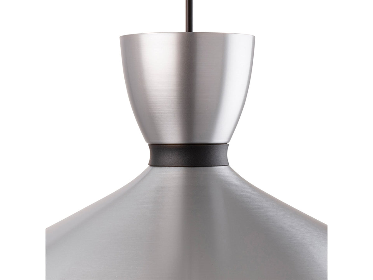 An attractive spun aluminium pendant finished in natural aluminium with a black band. It is painted white inside to ensure good light output and has a standard E27 lamp holder suitable for use with the latest LED lamps.