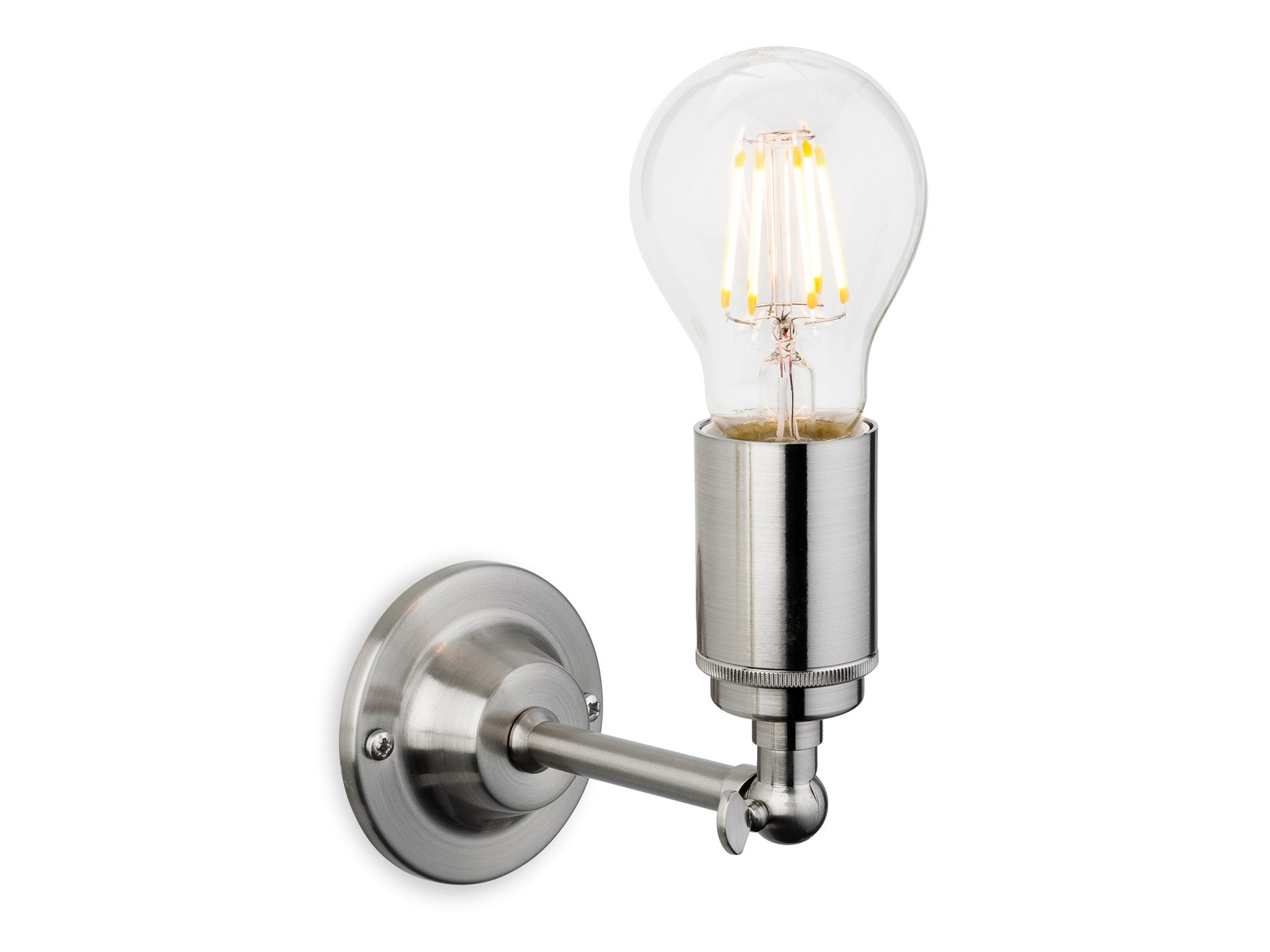 Simple retro wall light with manoeuvrable head. Can be used pointing up or down. Ideal for use with a vintage lamp.