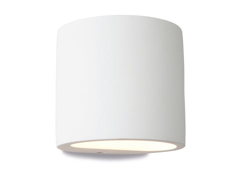 Fine quality plaster wall light featuring an oval light spill area which shines light both up and down. Plaster may be painted to match surrounding décor if so desired.