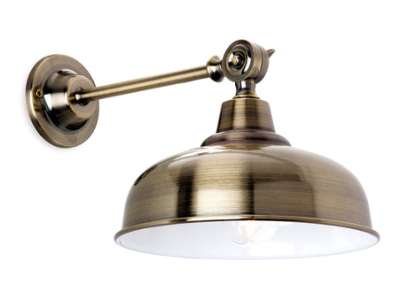 Traditional style antique brass wall light with a reflective white shade inside for even light distribution.