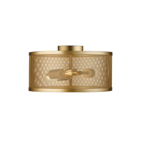 Matt Gold Metal & Mesh Shade: This stunning Fishnet gold flush encapsulants 3 lamps within a beautiful ornate black mesh cage. The gold shade is created using 2 curved perforated gold panels, they house 3 lamp holders positioned centrally. This contemporary fitting would work in a dining, kitchen or living room. The fishnet flush hangs elegantly from the ceiling by a gold chain, which is height adjustable to be able to adapt to different ceiling heights.