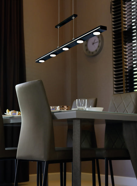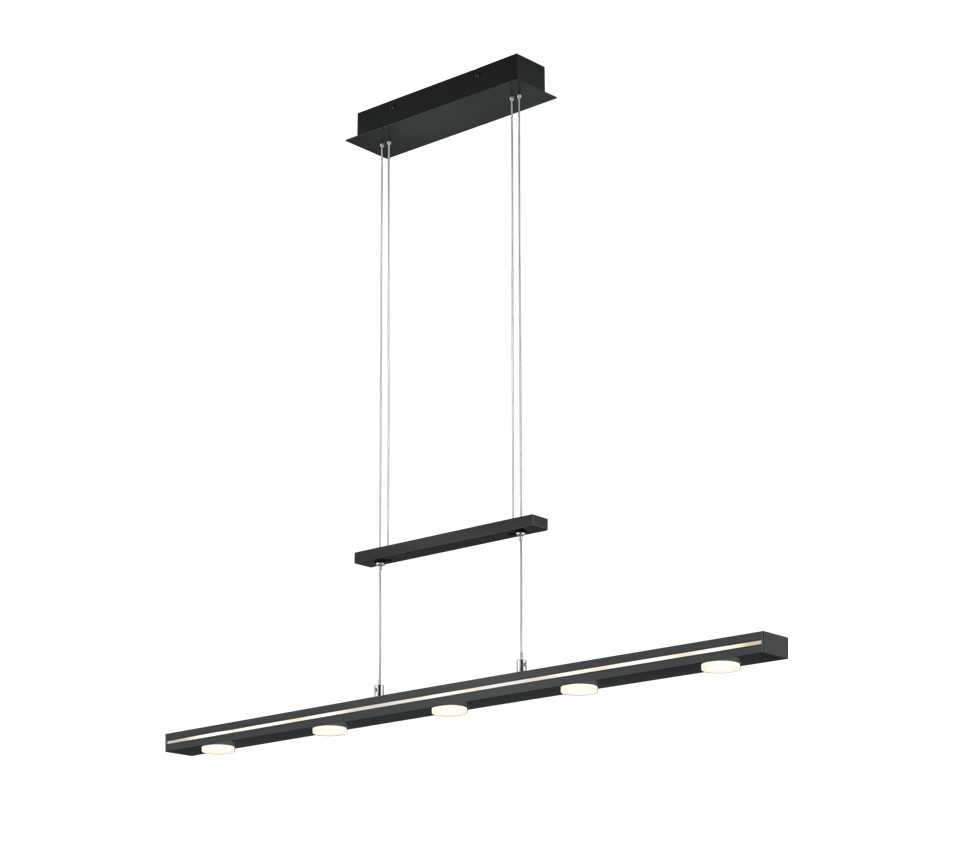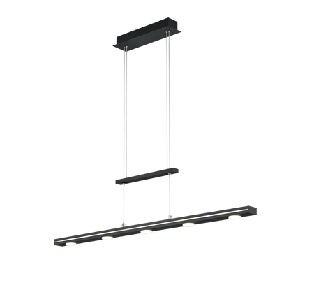 Choose between warm white or cool white and four brightness levels to create the right ambience for your needs. The light emission upwards and downwards enables targeted lighting and ensures a harmonious overall appearance. The LACAL can be individually adjusted in height between 95 cm and 160 cm, making it perfect for lighting your dining table. Of the seven light sources, five are round on the underside of the luminaire and two are rectangular on the top.