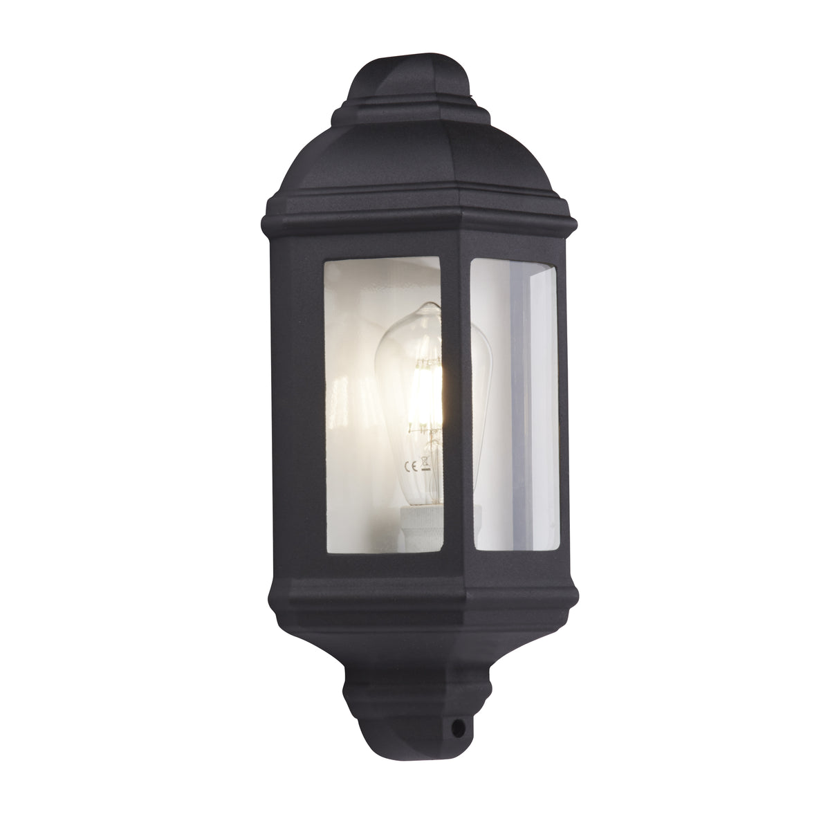 Black Metal & Clear Glass: The Maine outdoor wall light is in a lantern style, and is designed to give a stylish finish to any garden, outdoor space or balcony whilst offering the safety aspects of outdoor lighting. Featuring a black finish and exposed glass shade, The Maine outdoor wall light will look great placed outside any home. Its IP44 rating means this outdoor light can withstand the elements.