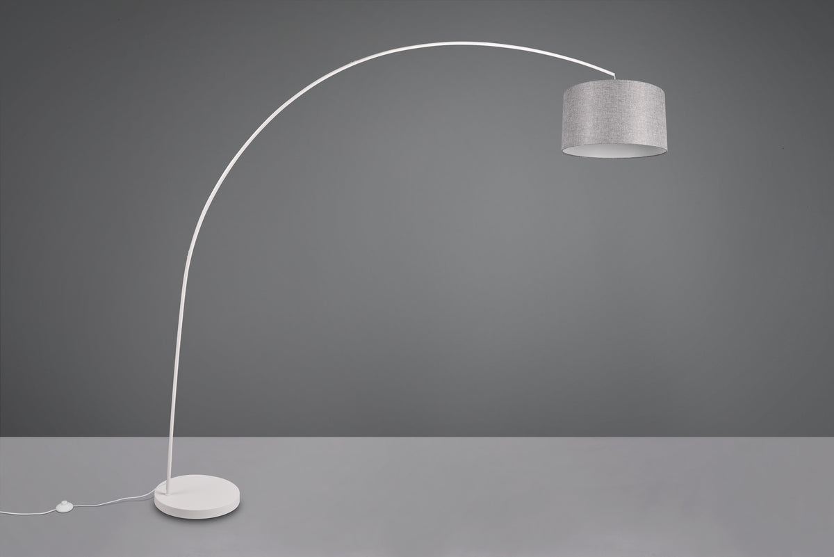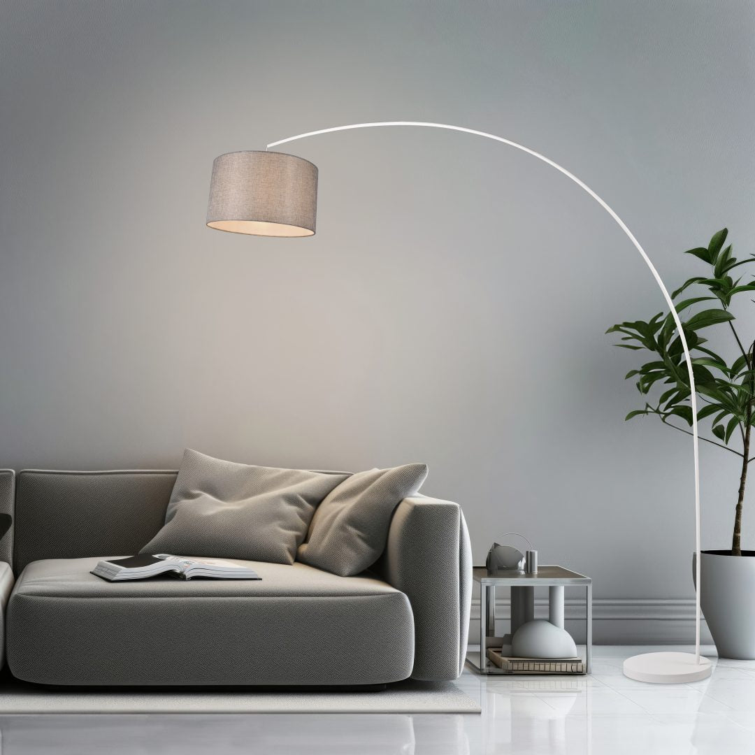 Arched luminaires add a modern touch to your home and at the same time radiate a pleasant sense of calm. This is also the case with the MANSUR floor lamp, which creates a warm atmosphere with its slender, curved frame and simple shade shape.