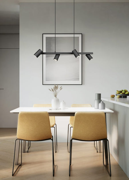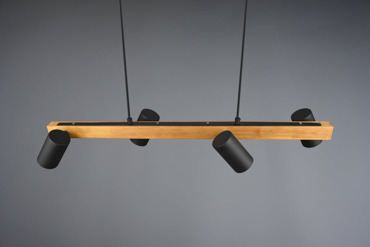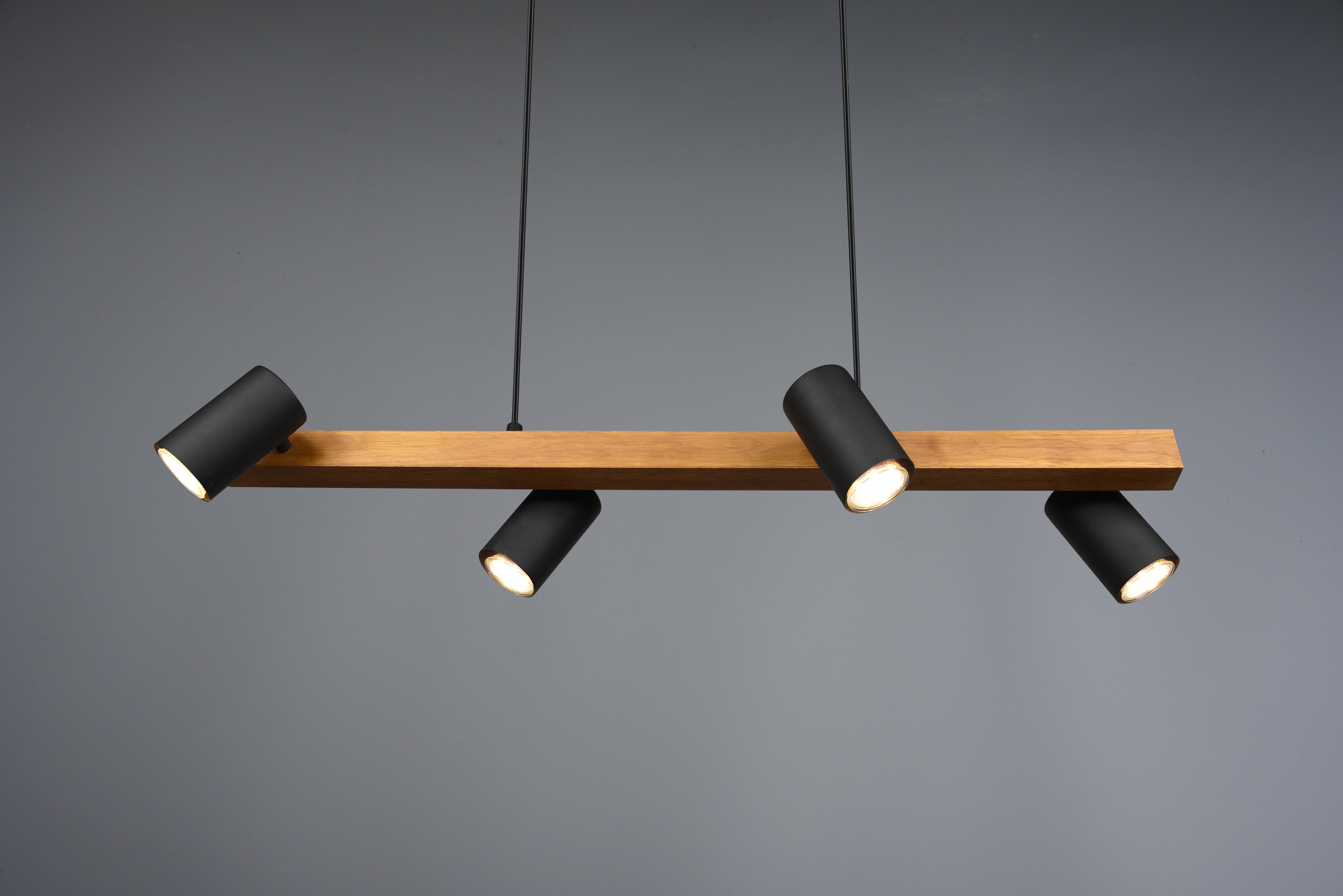 Whether in the kitchen or in the living area: the four-light MARLEY is versatile and can be easily combined with different furnishing styles. The pendant is designed in matt black and wood or just black and can therefore stylishly complement and complete modern colour concepts.