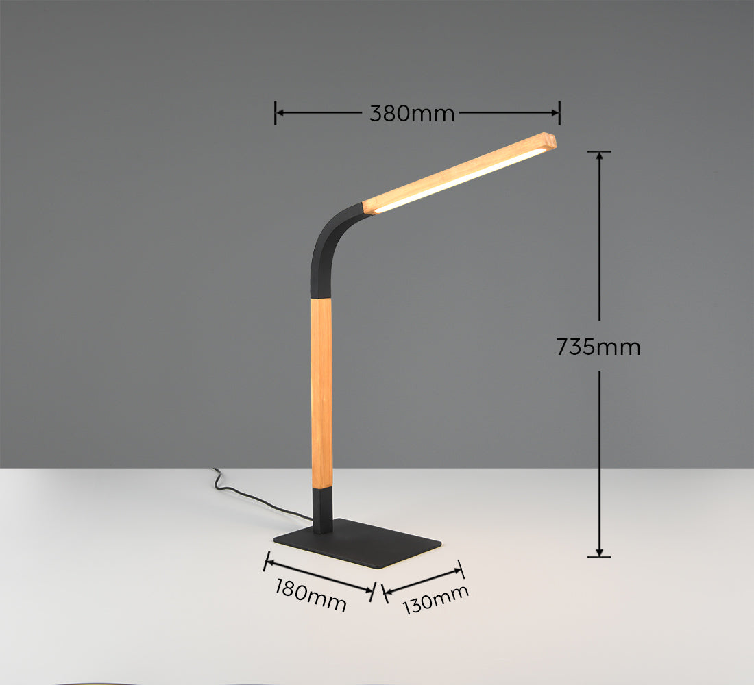 Thanks to the flexible arm of the NORRIS, the light can be directed individually, making the luminaire the ideal choice for any work area. The purist silhouette of the light and the successful combination of natural wood and matt black or white metal are impressive in every respect.