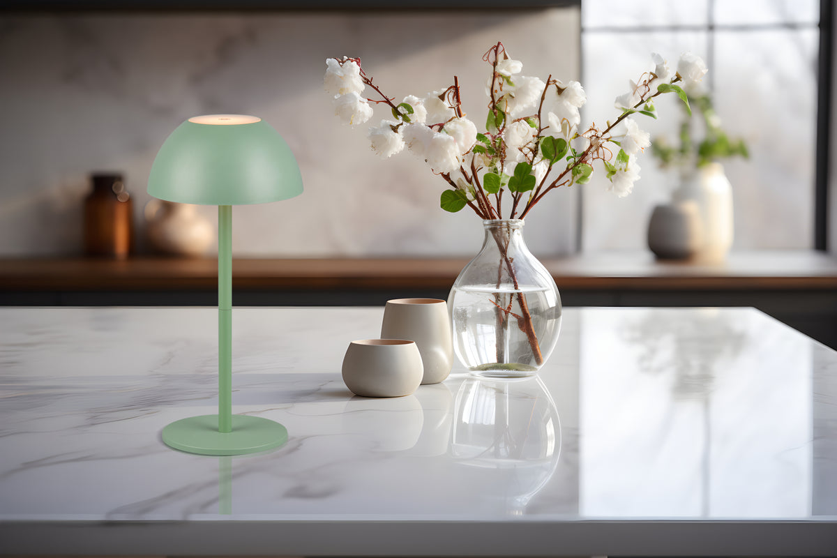 The RICARDO mobile LED rechargeable lamp combines design and functionality and is the ideal companion wherever light is needed. The downward and upward directed, glare-free light bathes any environment in a soft, atmospheric ambience.