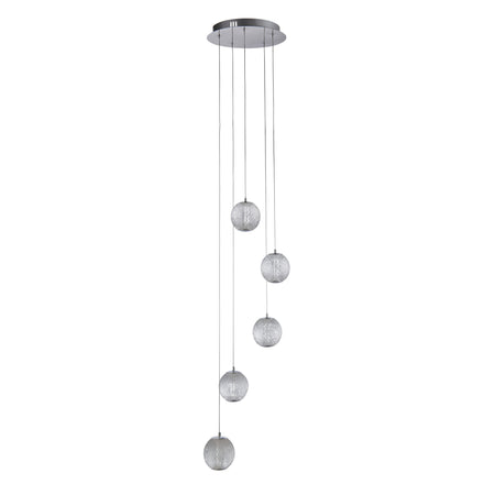 Elevate your space with the captivating beauty of the Allure Chrome Multi-Drop Pendant Light. This stunning pendant boasts five globe-shaped shades staggered in length, that are crafted from textured acrylic to create a visual masterpiece even when the light is turned off. The textured surface adds depth and character to the shade, making it a striking focal point that complements various décor styles, from modern and minimalist to traditional and eclectic.