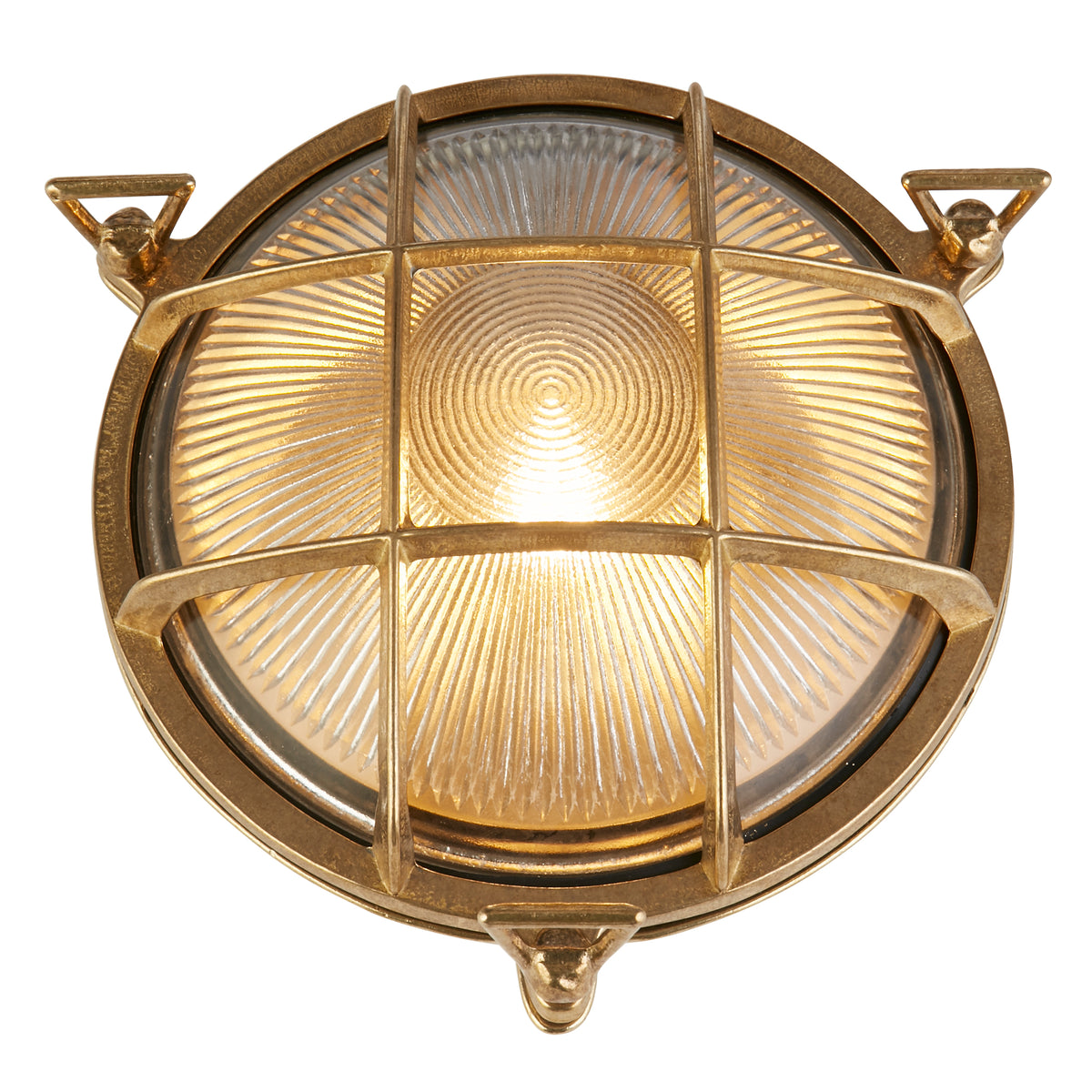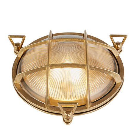 BULKHEAD Outdoor Wall/ Ceiling Light - Solid Brass Metal & Clear Ribbed Glass