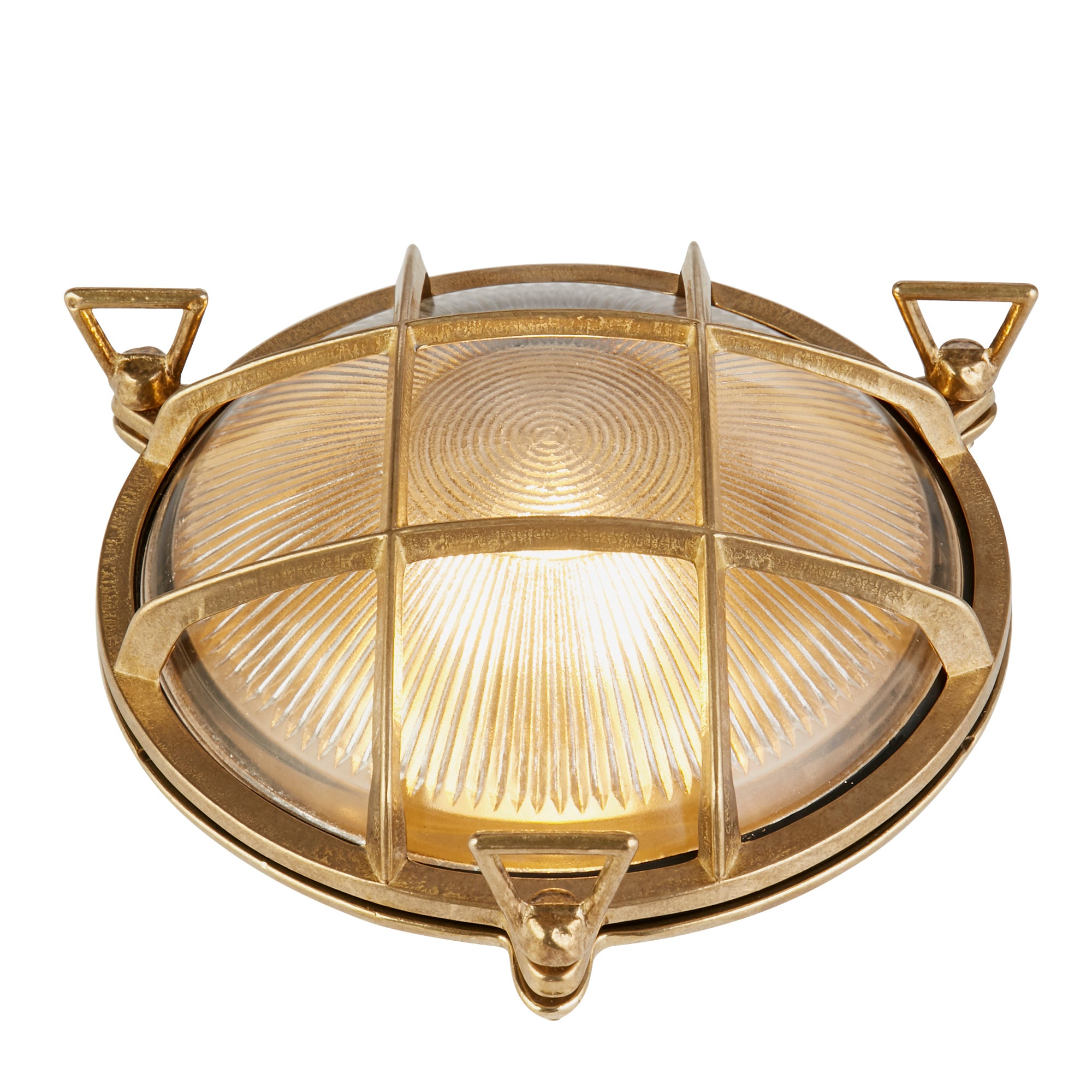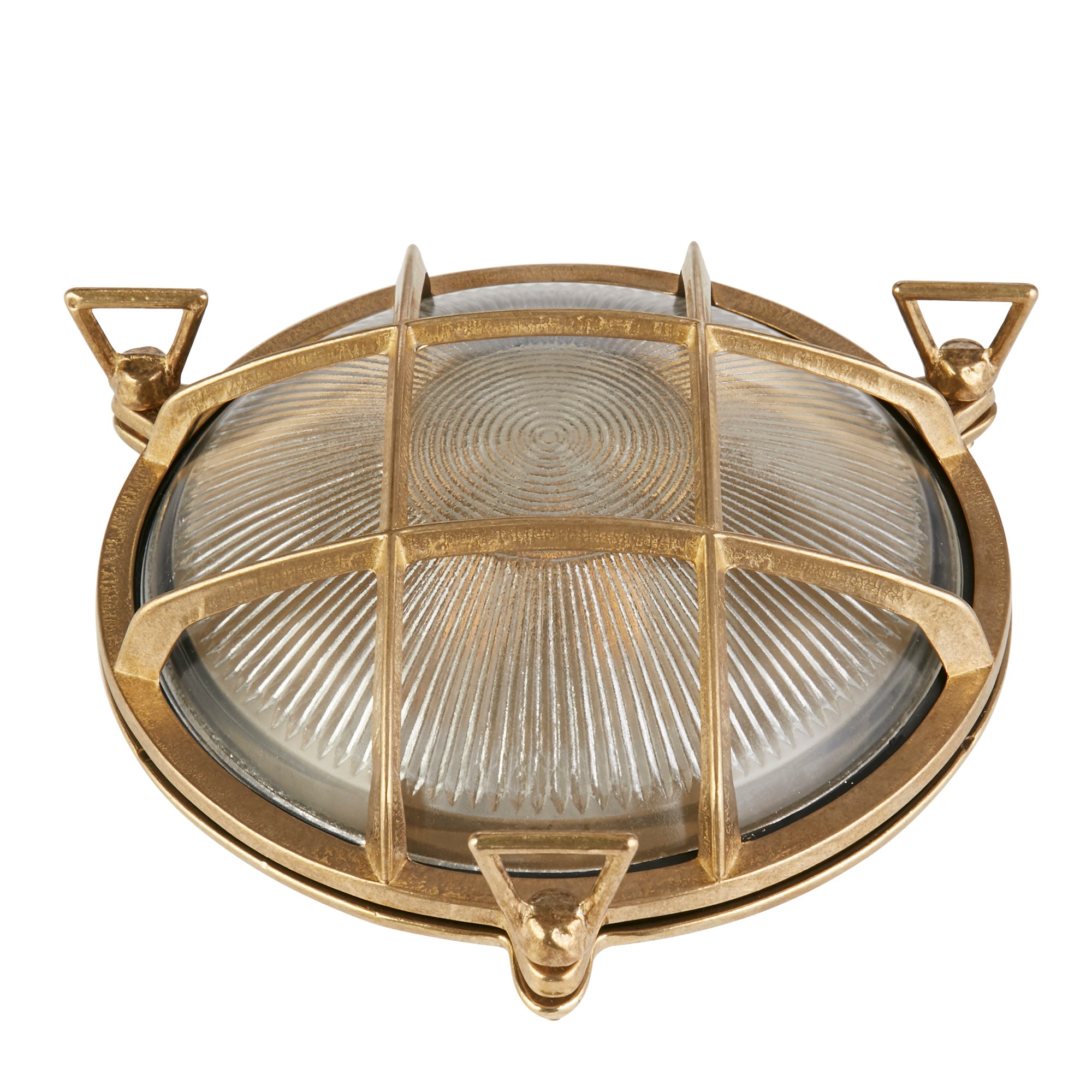 The Round Brass Bulkhead Outdoor Wall Light can be used for both external walls and ceilings, and so is the perfect addition to any outdoor space, garden or porch. It combines functionality and style with its durable construction from solid brass metal. With its protective cage design and brass colourway, this Round Brass Bulkhead Outdoor Wall Light not only adds visual appeal but also provides practical and safety benefits. The cage acts as a shield, safeguarding the bulb and internal components from accidental damage and the IP64 rating protects from weather conditions such as rain, wind, and debris.