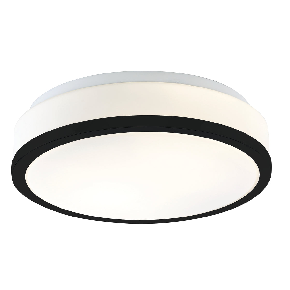 Black Metal & White Glass: This 2 light flush fitting with opal glass shade and black trim looks elegant on any bathroom or kitchen ceiling. The two lights are set behind a large 28cm diameter opal glass shade, which creates a beautiful lighting effect and brightens up the entire room. This simple white fitting has a stylish polished chrome finish trim to complete the look. This flush light is also IP44 rated and fully splashproof.