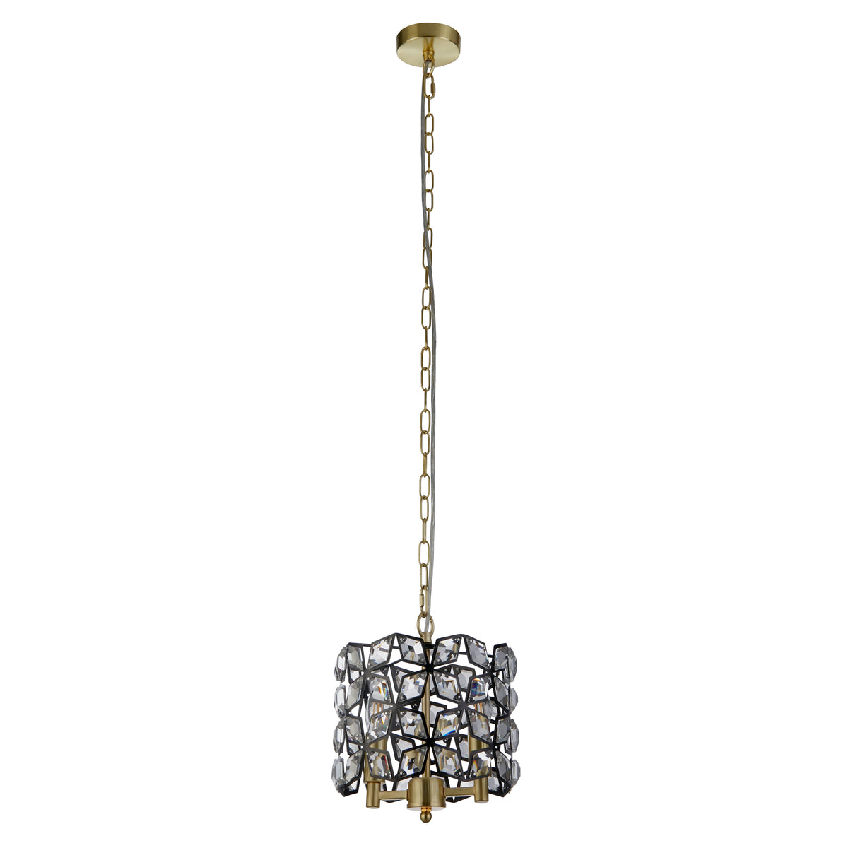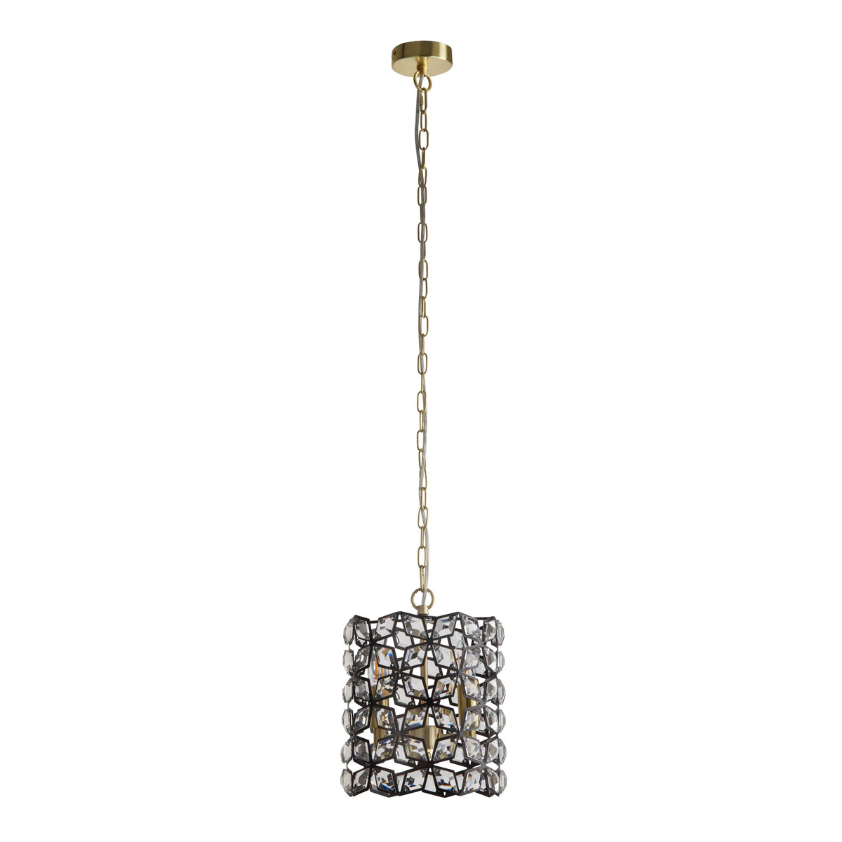 IRIS 2Lt Pendant Black Metal, Satin Brass & Crystal