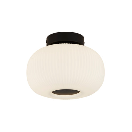 Perfect for the low ceilings of modern homes, the Lumina flush light works equally well in halls, offices and even utility rooms; casting an ambient glow through its opal, ribbed glass shade. Thanks to its contrasting matt black fitting, this light complements both dark or light décor.