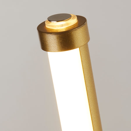 A masterpiece of minimalism with a sleek, modern touch. This 1.41m tall Lux & Belle floor lamp comprises a sleek thin vertical gold bar which houses an opal tube of light on a circular gold base, creating a stunning floor lamp for any room in the home. This eye-catching floor lamp also has a touch switch for ease of function, and is dimmable. The integrated LED light will also help with energy saving and reduce bills. 3 light ceiling light, bar pendant and wall light also available in this range.