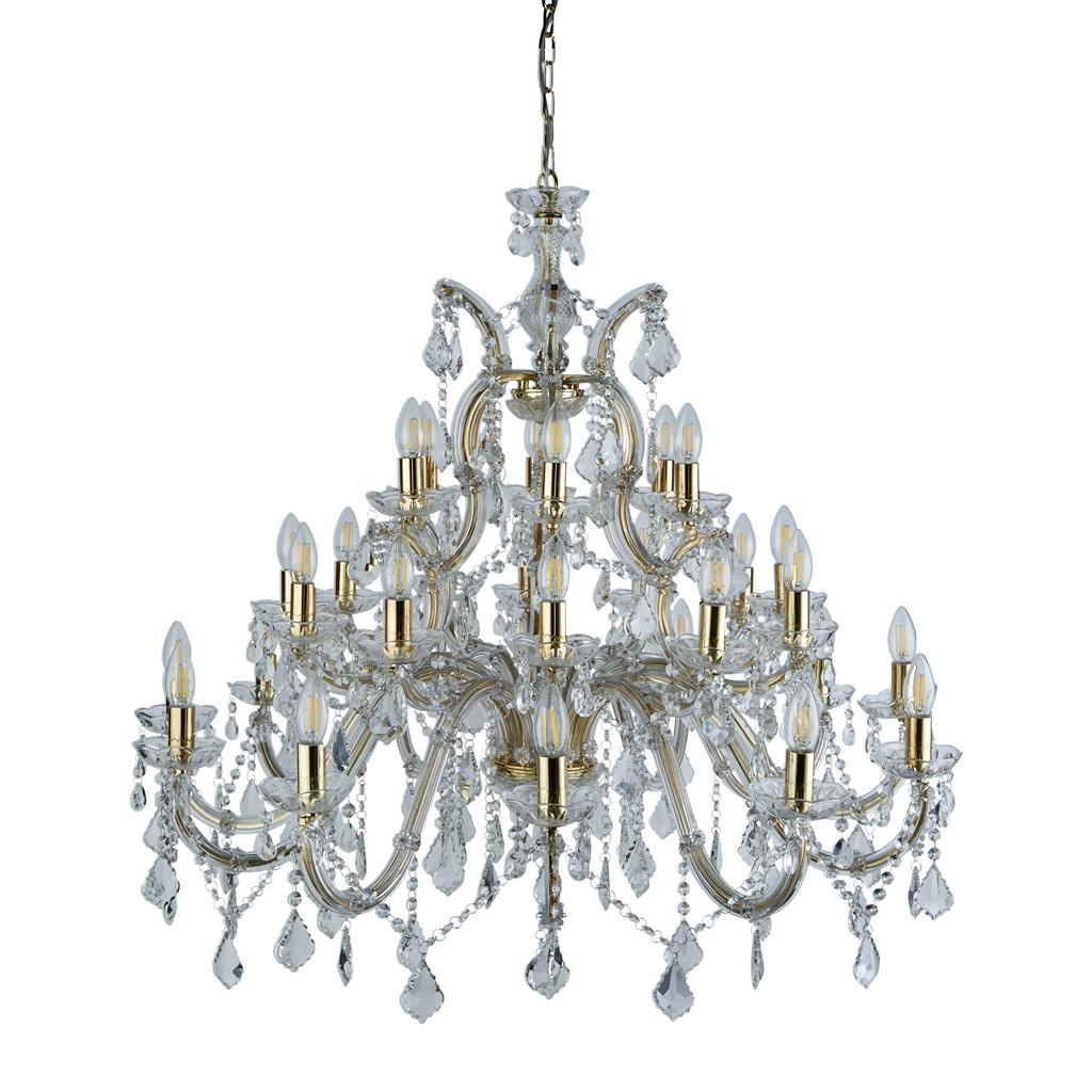 SEARCHLIGHT MARIE THERESE 30Lt Chandelier - Polished Brass Metal & Clear Crystal