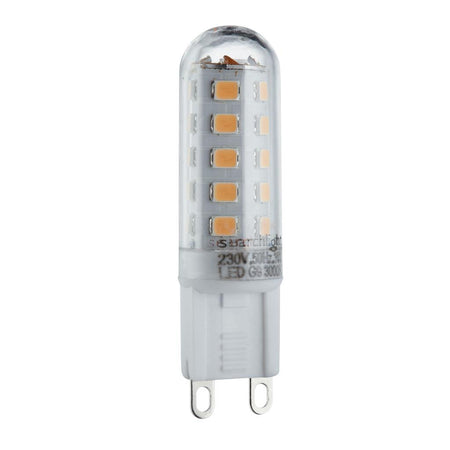 LED Lamps provide a high level of light output at a very low energy cost. This 3 watt G9 LED lamp can provide 300 lumens or the equivalent of around 28 watts of standard light, so they are the perfect, cost effective, direct replacement for your existing incandescent bulbs. With their high-quality design and attractive cool white light effect, LED Lamps offer a truly simple way to beautify your home. LED's use up to 75% less energy and last up to 20 times longer than incandescent bulbs.