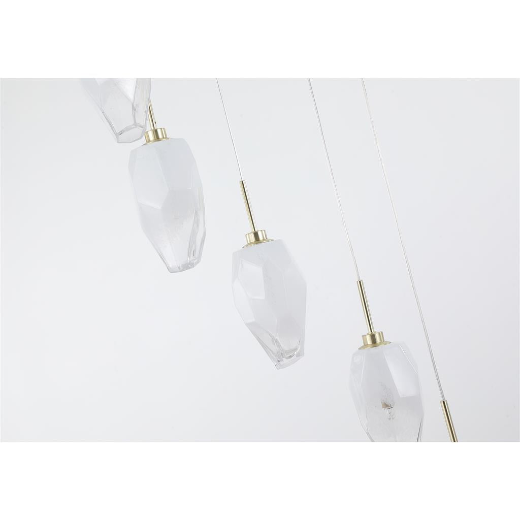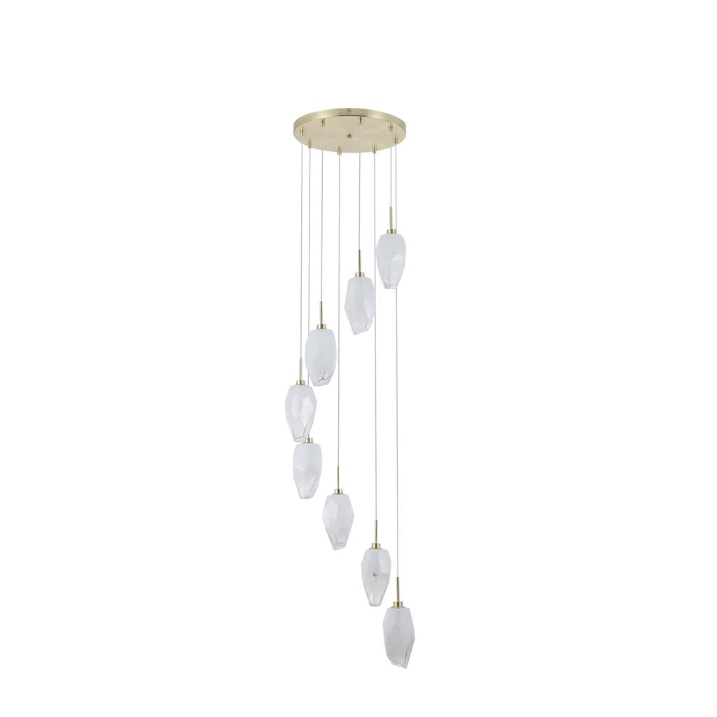 Rocky 8Lt Multi Drop Pendant, Satin Brass Metal & Glass