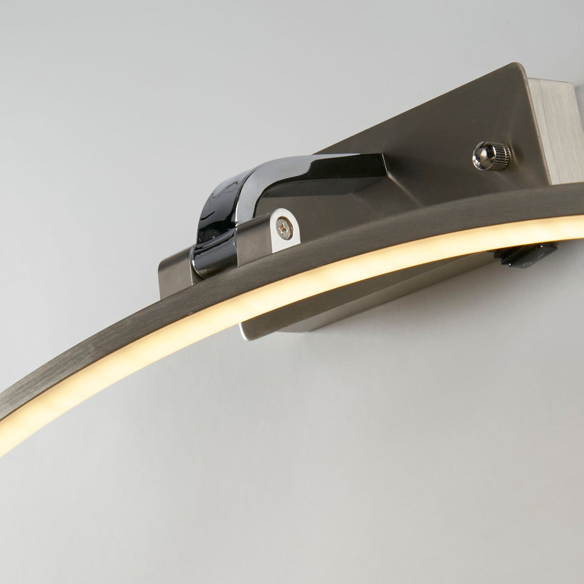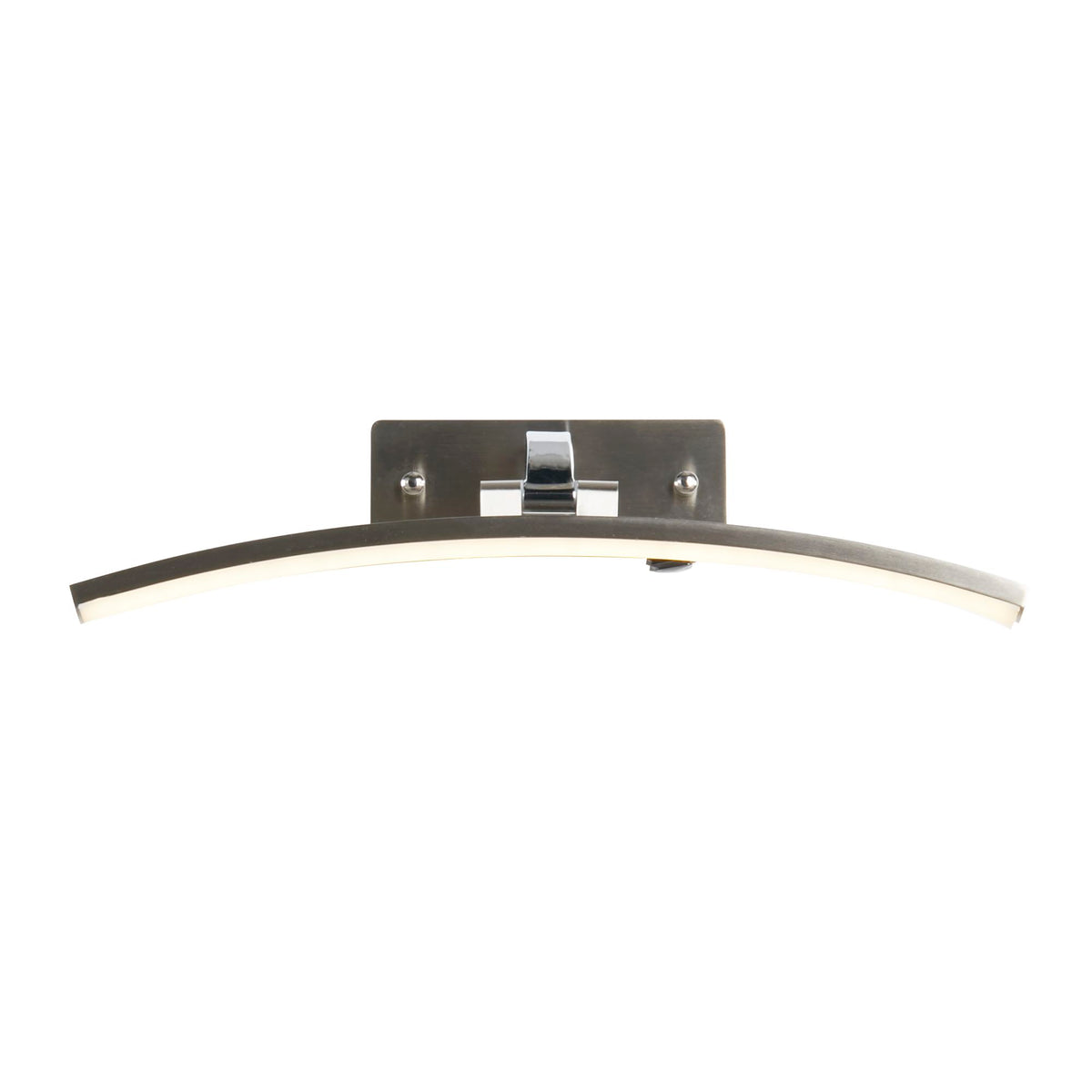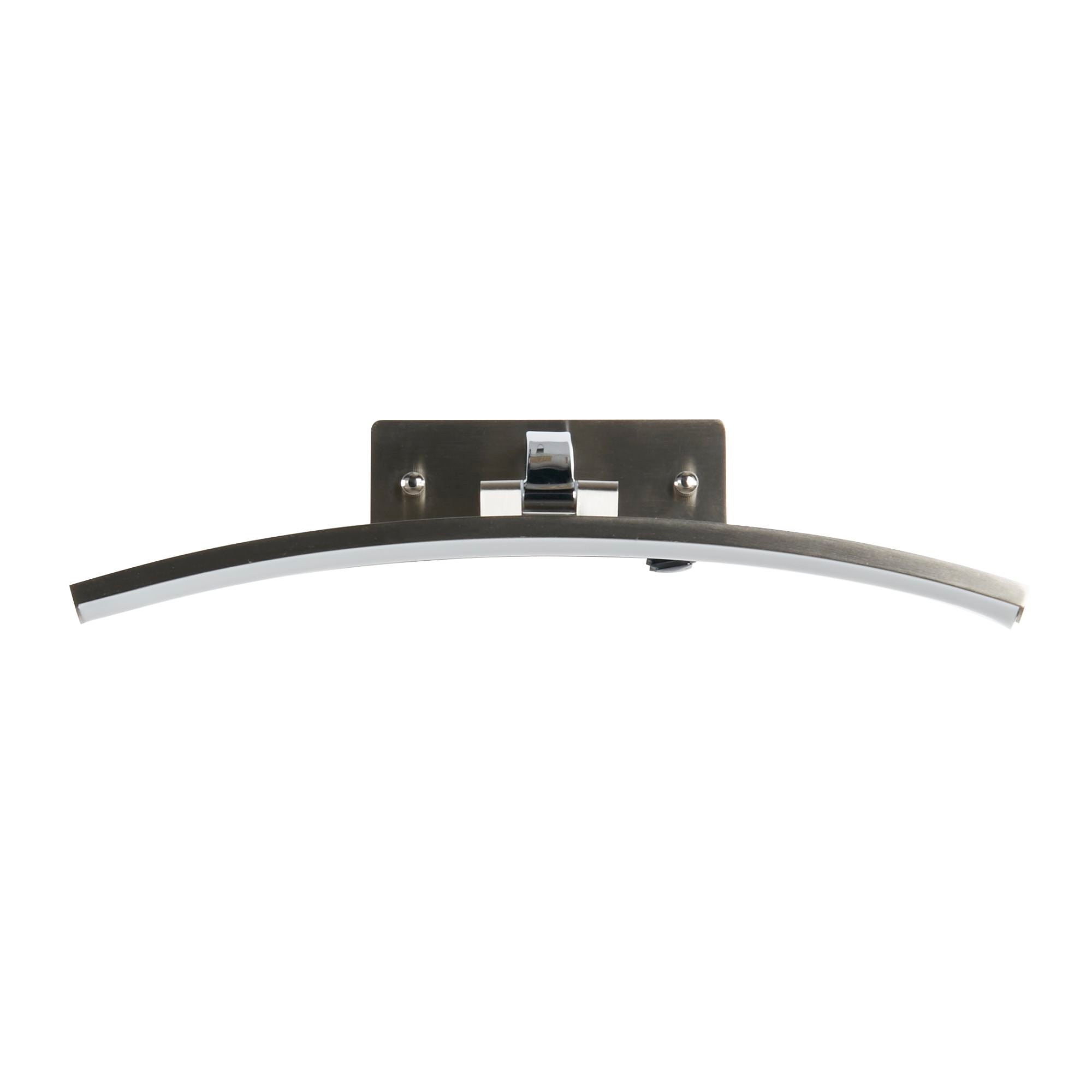 Satin Silver & Polished Chrome Metal: The Santorini LED Picture Light, with a satin silver and polished chrome, combines style and functionality for illuminating your artwork. With a 40cm width, it is constructed with mild steel and silicone and features a strip-shaped shade in a satin silver finish. The head of the light pivots back and forward, providing precise and even illumination, showcasing your artwork's true colours and details. With integrated LED technology, energy efficiency, and adjustable lighting options, the Santorini LED Picture Light is a perfect choice for enhancing the visual appeal of your artwork.