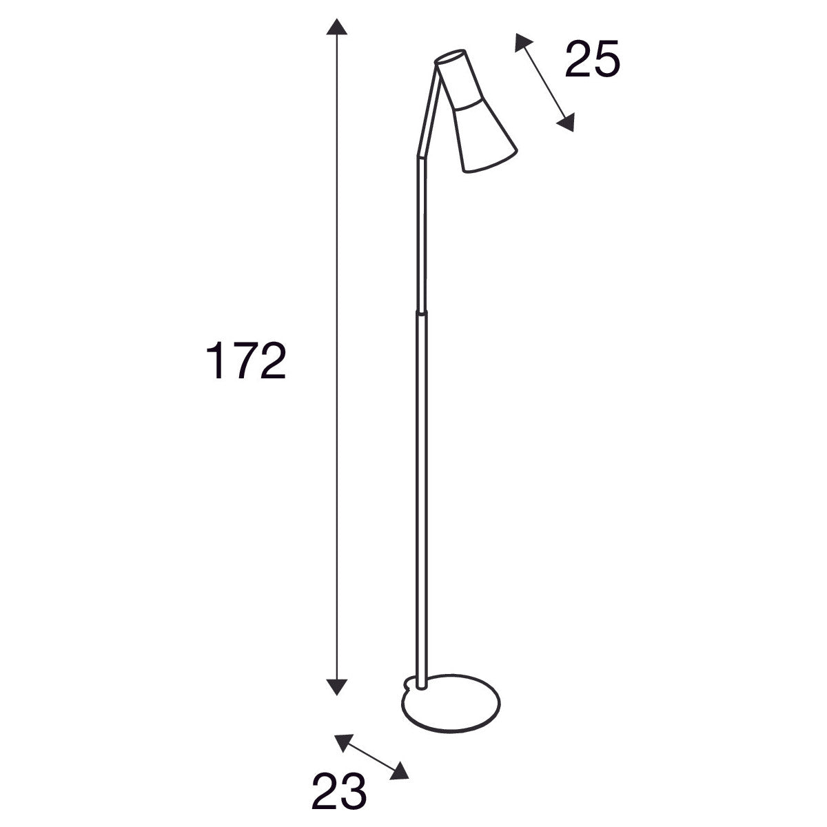 The PHELIA floor stand comes in several colour variants and impresses with its elegant conical lamp shade and its puristic appearance. The luminaire is made of aluminium and steel and, thanks to the E27 socket, is suitable for both incandescent lamps as well as energy-saving lamps and LED lamps. PHELIA floor stands come with a cable with an integrated foot switch and are ready for immediate connection to a 230V power supply.