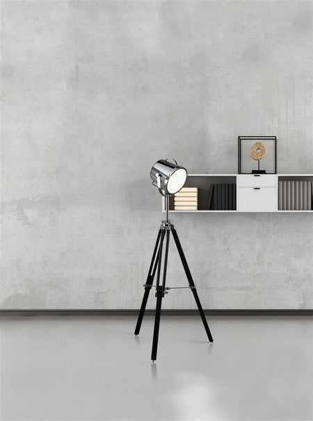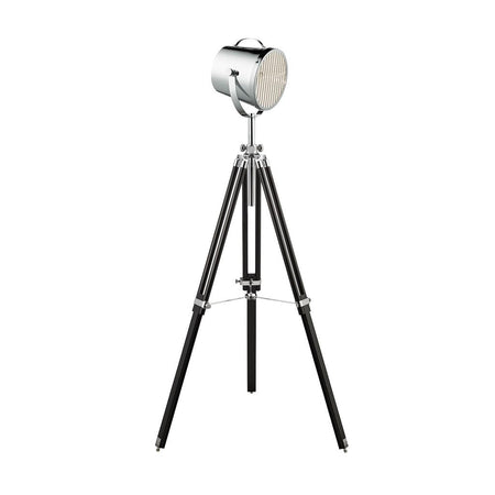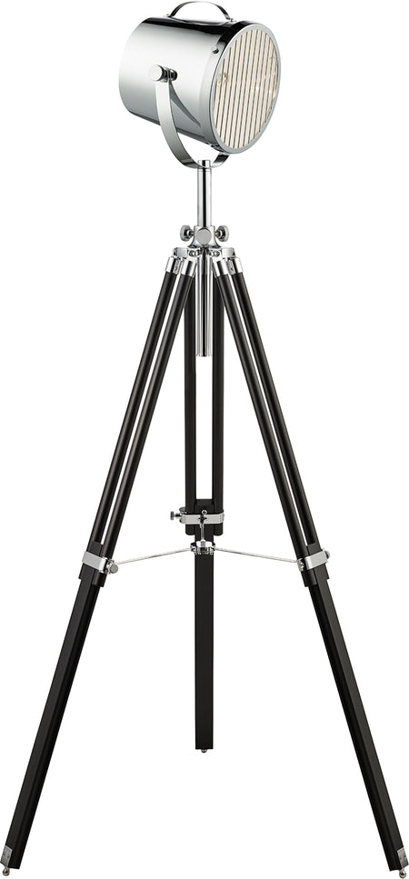 SEARCHLIGHT STUDIO Tripod Floor Lamp - Chrome Metal & Black Wood