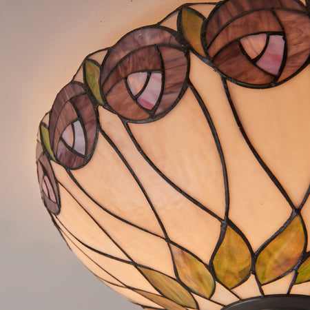 This ceiling flush light was inspired by designer Charles Rennie Mackintosh and mimics his famous rose design. Dimmable and compatible with LED lamps