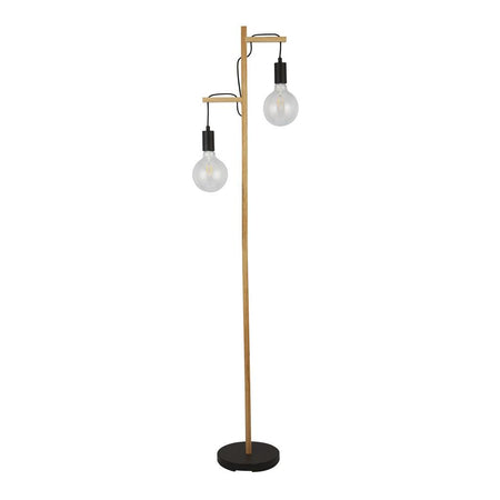Fuse contemporary and traditional with the eye-catching Woody floor lamp. The 2 exposed bulbs hang from the wooden frame by black cables, creating a statement feature to any room.